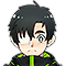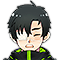 黒い短髪に切れ長の目、青い瞳。