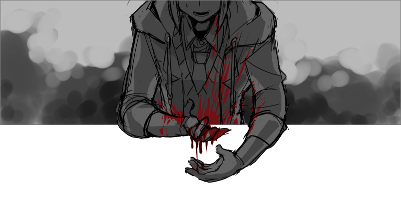 | ??? 「あ゛ッ、うッ、痛…………!?いっ、痛゛ッてェ゛ッ、 これ、血が、ぁア゛……!」 |