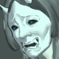 | 能面で顔を覆う。その表情はうかがい知れない。 |