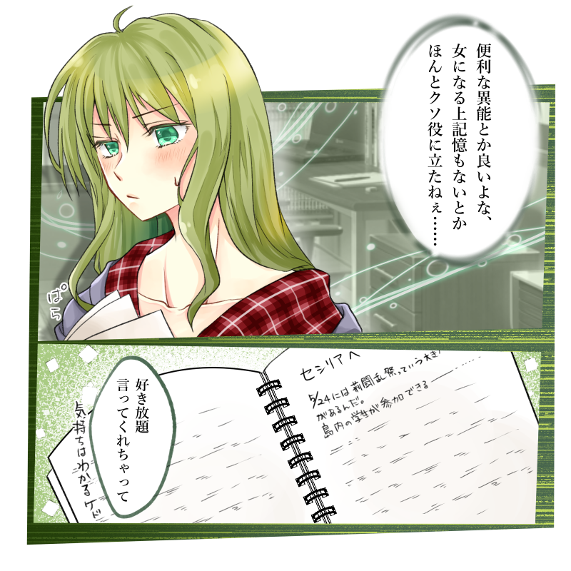シュリ 「セシリアさんはイギリス系..ですよね。 いえ、たまに聞く英語の発音が英国系だと思って。 向こうではグリーンゲイジというプラムが梅に近いようですが……味も似ているんでしょうか」 |