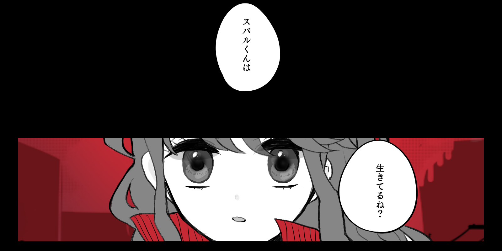 なずな 「スバルくんは、実際に生きてる人間なんだよね? 今までごめん、気ぃ遣ってもらって」 |