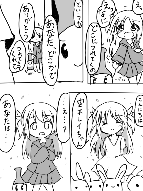 ひびこ 「あ!じゃあここから抜け出せたら、みんなと、黒い子も一緒にお出かけしましょうよ! いろんなところ案内してあげないと!」 |