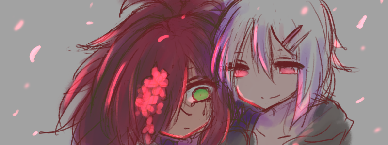 「──同じであるはずだったんだ。 辛かったね、リヨ」 (少女の首に咲く花を、幽鬼のあたたかな指が撫ぜ、包み込む。) |
