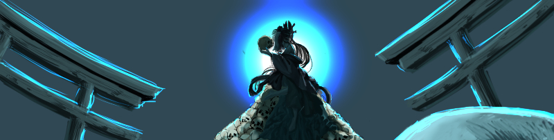 絶望の先触 「真理を欲して祈れども 水の様に零れ落ち 自由欲しさに進めども 嘗ての道しか歩けずに 救い欲しさに叫べども 救いの意味に慄いて 屍山血河を築き上げ 最後に握った掌に_」 |