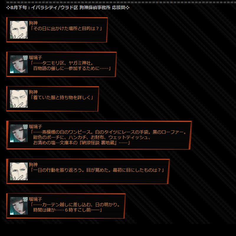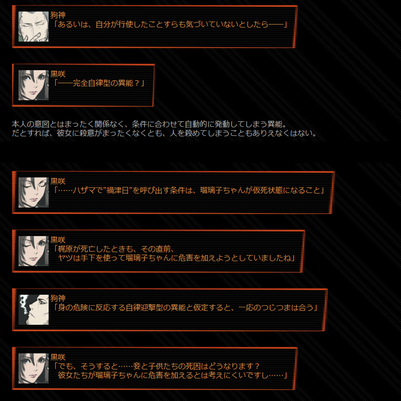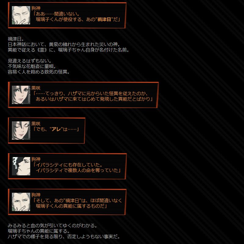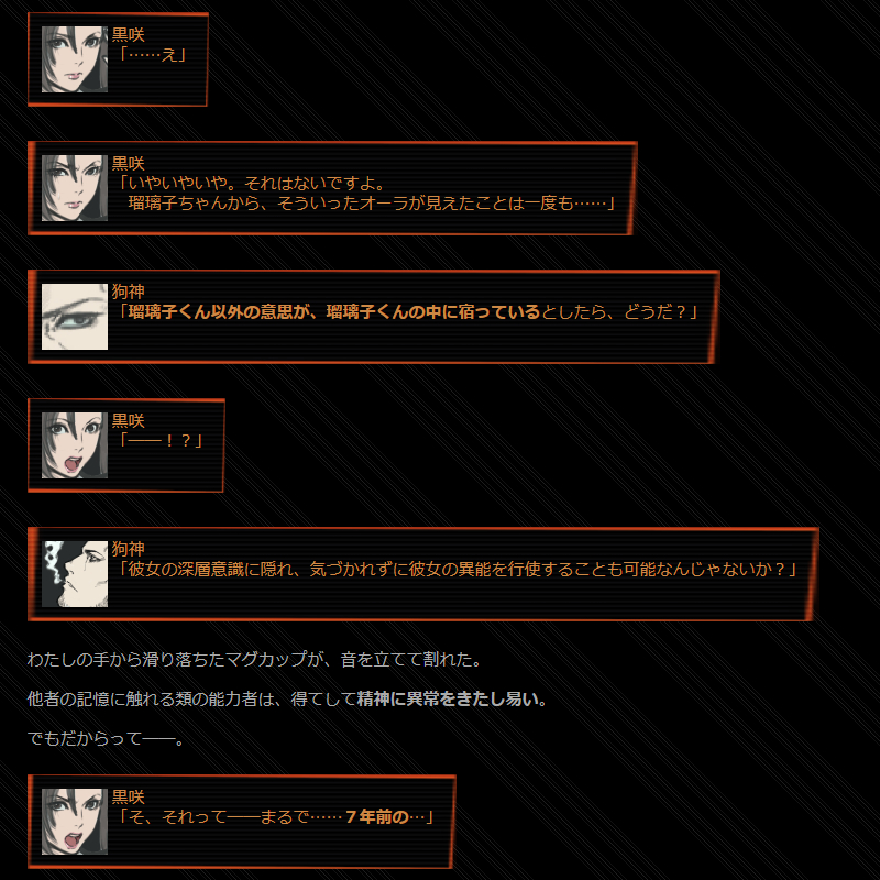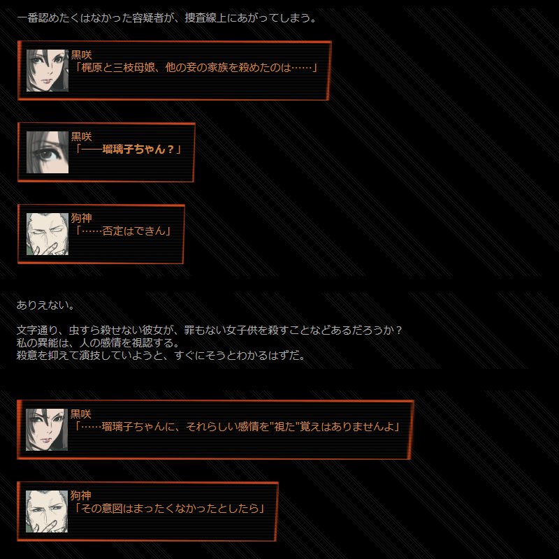 | 瑠璃子 「……アダムスなる少女。 今は、どのような想いでいるのでしょう……」 |
