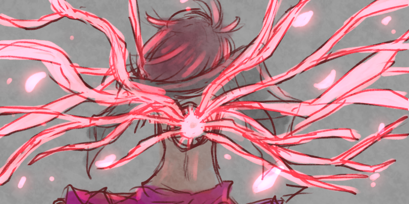 胸の空洞の中、赤い糸に繋がれて脈打つ種。 |