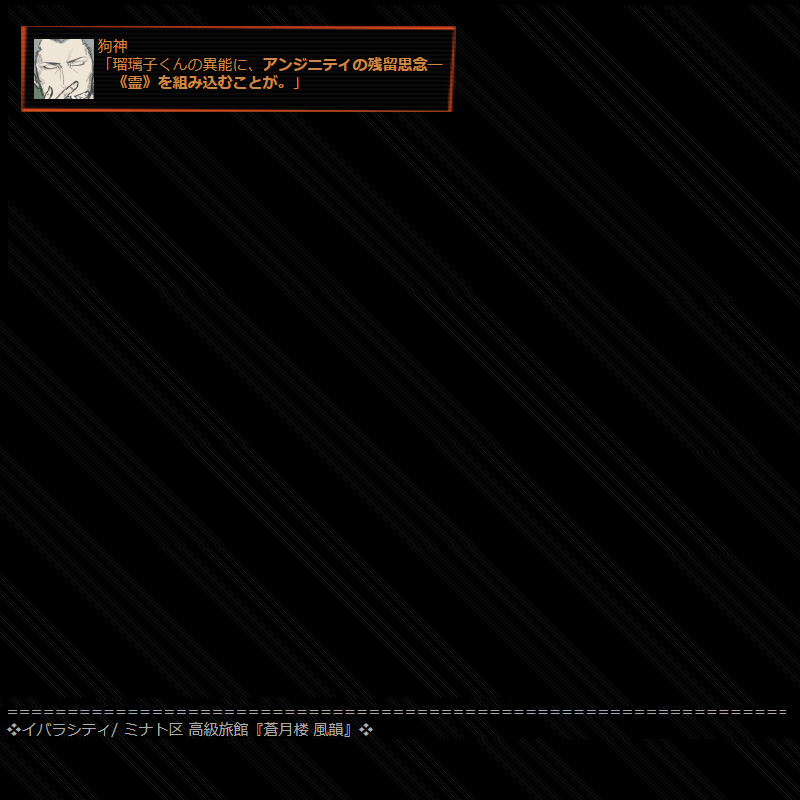 白南海 「そもそもロストってのはどういう・・・・・・ぁ、この質問はやばいん――」 |
