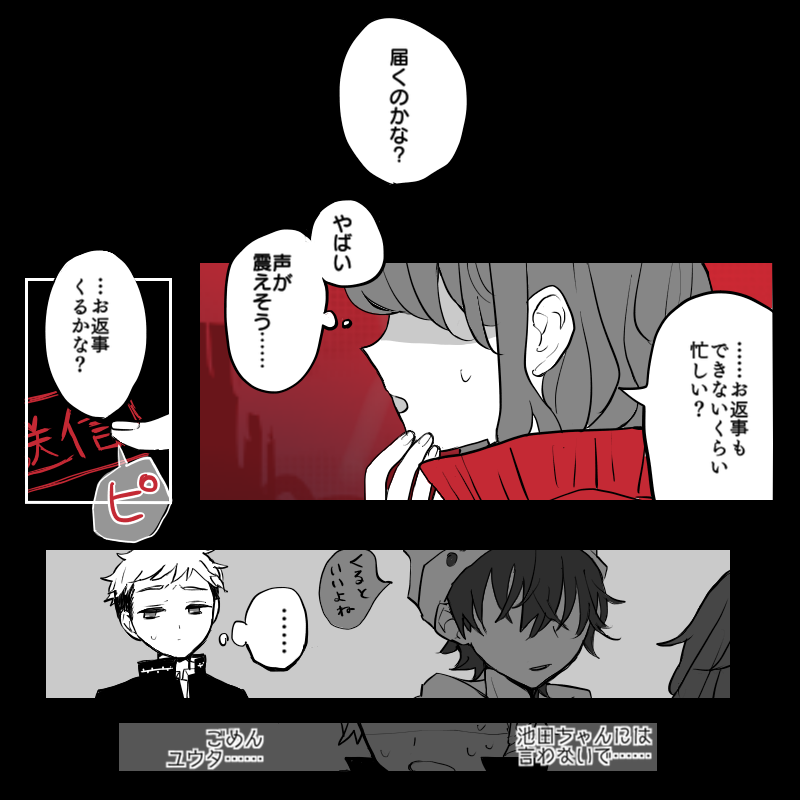 なずな 「ねえ……と、トヨくん、いつもの……回復するやつやって……! スバルくん、治して……!」 |