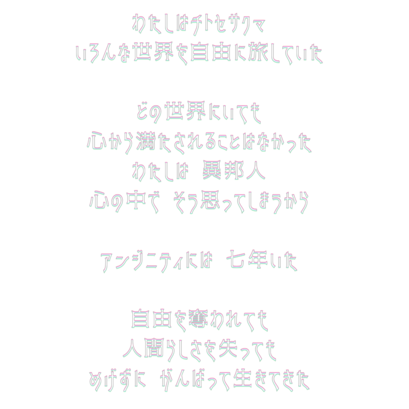 | サクマ 「でもね、約束したの。 わたしはもう一度アンジニティに戻る。」 |