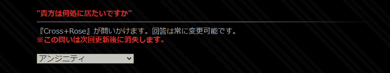 白南海 「貴方は、何処に居たいですか? ・・・ねぇ。」 |