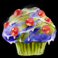 抹茶とブルーベリーの色合いがサイケデリックなきのこ型マフィン。 真っ赤なドレンチェリーが禍々しさに拍車を掛ける。 味は無難に美味しい。 |