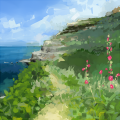 *浜辺との境である森の終わりに、一輪の花が植えられた* |