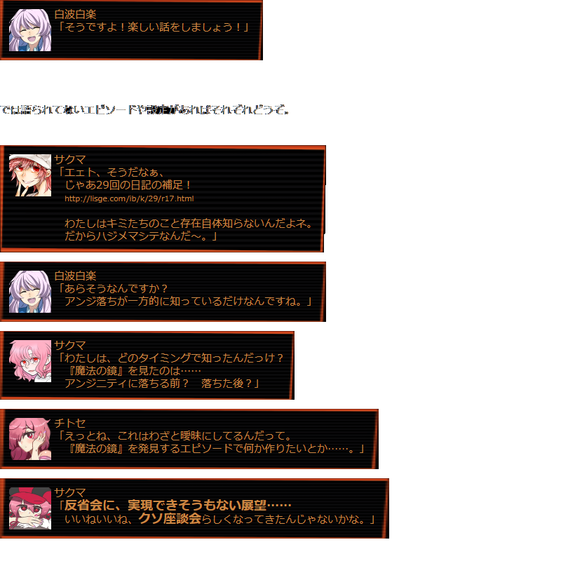 サクマ 「反省会じゃなくて座談会だヨ?」 |