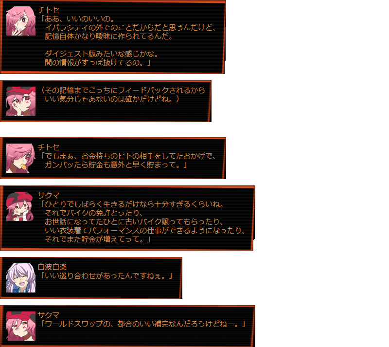 | サクマ 「その思い出が全部わたしにインストールされて ハザマ日記ももっと盛り上げられたでしょうね。」 |