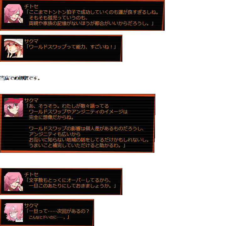 | サクマ 「めっっちゃ喋るじゃんこのわたし……。」 |