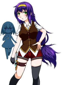 使い魔は剣の世界で仲間になった闇属性のスライム。 名前はイムカ。 魔竜の魔力の結晶に近い髪を一本吸収されたところ 何か通じ合ったらしく仲間になった。 人型になり、念話できるようになったりしている。