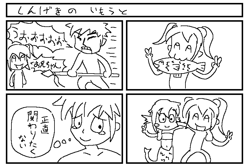 堕落した★妹の絵日記が足元に転がってきた。 ![]() 。・,*:☆ し と ど ち ゃ ん に っ き ☆:*,・。 おさかな さん どーん たくあん かう いもうと ふえた れんしう しあい かった ひと でた どーんする いいこと いいこと?