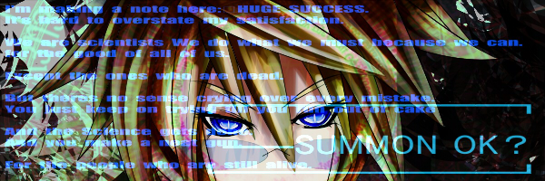 闇魔術協会。玉座の間。 闇司祭ヴォーバル藍色の乱れた髪に、赤色の瞳。血色が悪い。 黒ずくめのローブに金の装飾を多く身につけている。 闇司祭ヴォーバル「申し訳ありません、テネブ様。彼女を逃してしまいました。」ヴォーバルは誰もいない玉座に向かって話している。 闇司祭ヴォーバル「・・・いえ、予兆は全くなく。本人も私達を警戒してなどというわけでは・・・・・」 闇司祭ヴォーバル「・・・・・はい。では機が来るまで捜索は一度中止します。」テネブという相手と話が成立しているようだ。 闇司祭ヴォーバル「・・・・・・・ふぅ。」安堵とも取れるため息をつくヴォーバル。 闇司祭ヴォーバル「しかし予想外だった。まさかこのタイミングで抜け出されるとは・・・・・」ヴォーバルが玉座の間から外へと戻ろうとすると、突然入り口の扉が開かれる! ルーナ亜麻色の髪に朱色の瞳の少女。 剣を持ち、冒険者風の出で立ちをしている。 ニックス青の短髪に群青色の瞳の男。 巨大な斧を持っている。 シエロ銀色の長髪に紫の瞳の青年。 黒い翼の生えた杖を持ち、神官風の出で立ちをしている。 ルーナ「ついに見つけたわ、協会本部ッ!!戦姫ルーナ、・・・参るッ!!!」 ニックス「お盛んだねぇお姫さん。前はニックス様に任せなさいってば。なぁシエロ?」 シエロ「ニックスだけじゃ瞬殺じゃんか。・・・・・サモン・エンジェル。」宙に魔法陣が展開され、そこから天使が舞い降りる。 闇司祭ヴォーバル「・・・・・・。」無言でため息をつくヴォーバル。 闇司祭ヴォーバル「全く、面倒事は重なるものですねぇ・・・ここをどうしようと勝手ですが、ただただ・・・・・」 闇司祭ヴォーバル「・・・・・邪魔、ですよ。」![]() エルリッヒ「んじゃやるかねー こういうのも楽しいよ、きっと。」 エリス様「くくく…さぁ、共に戯れようぞ」 ニキ「がんばるーっ」 リュミエル「あなたの物語はどんな色?見せて頂戴♪」 闇司祭ヴォーバル「まったく・・・・・」 ルーナ「観念しなさいッ!!」 ニックス「よっしゃ来いやぁぁッ!!」 シエロ「・・・手抜きとかしないでよね、こっちが面倒なんだから。」ルーナの活力Lv.6! ルーナのMHPが 2848 上昇!HPが 2848 上昇! ルーナの命中Lv.6! ルーナのHITが上昇! ルーナのMHITが上昇! ニックスの太陽Lv.4! ニックスは狙われやすくなった! ニックスのDFが上昇! ニックスのMDFが上昇! ニックスの活力Lv.4! ニックスのMHPが 2925 上昇!HPが 2925 上昇! ニックスの物攻Lv.4! ニックスのATが上昇! シエロの魔攻Lv.4! シエロのMATが上昇! シエロの命中Lv.4! シエロのHITが上昇! シエロのMHITが上昇! シエロの後援Lv.1! シエロの隊列が2列目になった! シエロの長射程Lv.3! シエロの射程が4になった! エンジェルAの回復Lv.6! エンジェルAのHEALが上昇! エンジェルAの後援Lv.2! エンジェルAの隊列が3列目になった! エンジェルBの回復Lv.6! エンジェルBのHEALが上昇! エンジェルBの後援Lv.2! エンジェルBの隊列が3列目になった! エンジェルCの回復Lv.6! エンジェルCのHEALが上昇! エンジェルCの後援Lv.2! エンジェルCの隊列が3列目になった! エルリッヒ「じゃあちょっと働きますかねー。―――SEI X16 STZ NMITIME LDA #BLANKING LDX #1FFFH ―――SUMMON。」 ![]() エルリッヒの活力Lv.4! エルリッヒのMHPが 2154 上昇!HPが 2154 上昇! エリス様「さて、蹂躙してやろう」![]() エリス様の魔攻Lv.3! エリス様のMATが上昇! エリス様の長射程Lv.3! エリス様の射程が4になった! エリス様の後援Lv.1! エリス様の隊列が2列目になった! 常世の後援Lv.3! 常世の隊列が4列目になった! 常世の魔攻Lv.2! 常世のMATが上昇! 常世の回復Lv.2! 常世のHEALが上昇! ニキの後援Lv.2! ニキの隊列が3列目になった! ニキの長射程Lv.2! ニキの射程が3になった! リュミエルの痛撃Lv.2! リュミエルのCRIが上昇! 闇司祭ヴォーバルの後援Lv.2! 闇司祭ヴォーバルの隊列が3列目になった! 闇司祭ヴォーバルの長射程Lv.2! 闇司祭ヴォーバルの射程が3になった! 闇司祭ヴォーバルの魔攻Lv.4! 闇司祭ヴォーバルのMATが上昇! 闇司祭ヴォーバルの体力Lv.4! 闇司祭ヴォーバルのMSPが 309 上昇!SPが 309 上昇!